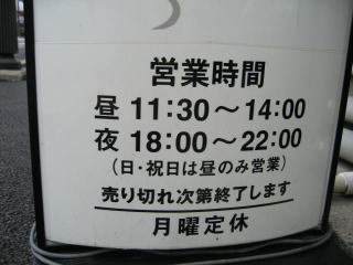 営業時間、定休日の表示は平成18年に来た時と変わっています。
