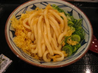 今日は「ぶっかけうどん」温で並290円です、無料の天かすとネギをたっぷり入れました。