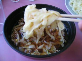 ビロビロの平打ち麺、結構歯ごたえあります。