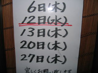 「木曜日定休日」は調査済、が〜ん!なんと今日は臨時休業日です!!