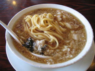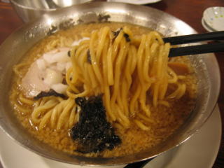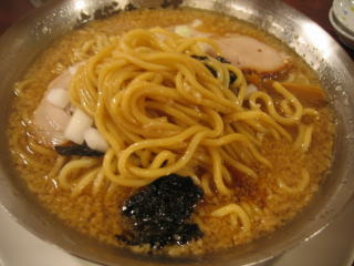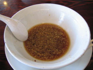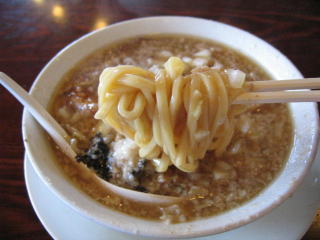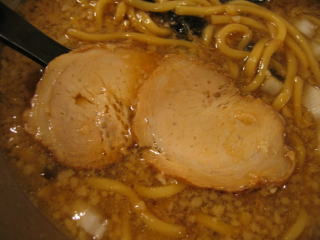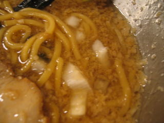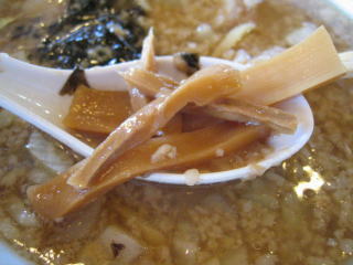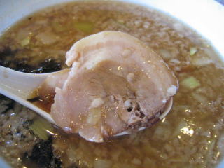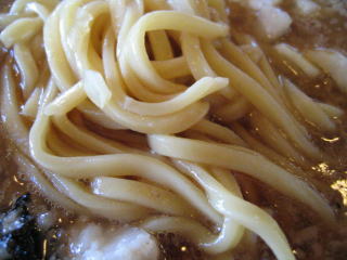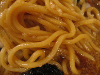 麺は中太麺、スープは濃い色の醤油タイプ、甘じょっぱい感じです。