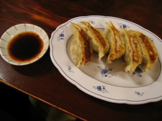 餃子のタレは、醤油、酢、ラー油でお好みで作ります。
