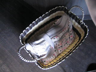 カウンター席テーブル下には荷物置き棚もありましたが、床直置きの荷物カゴもあります。