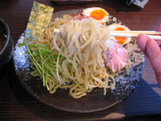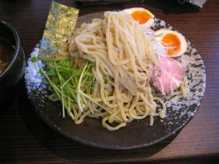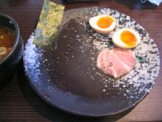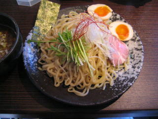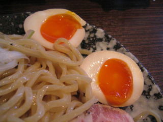 「つけめん」中盛サービス750円にクーポン券で半熟煮玉子サービスです。