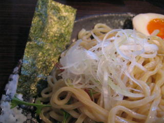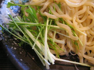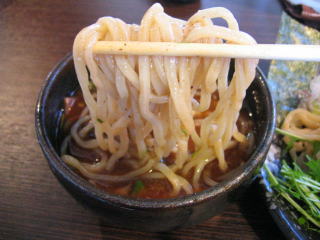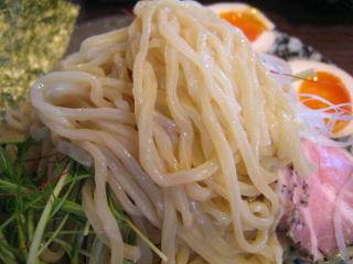 麺は白く太くストレートで、冷水でよく締めてある、腰のある麺です。