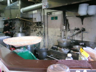 店内は右側に厨房とカウンター席が7〜8席、右側に4人掛けテーブル席が3席です。