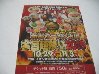平成27年11月1日(日) 新潟市で開催の「BSN水曜見ナイト 新潟ラーメン王国 全国麺祭り2015」にお邪魔しました。
