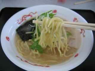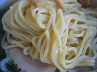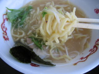 麺は旭川の麺だそうです、白い中太麺、縮れ麺です。