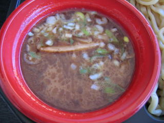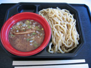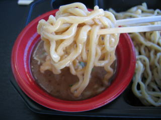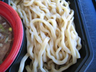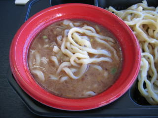 太い麺は冷盛、つけだれは醤油と節が効いた熱いスープです。