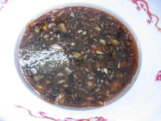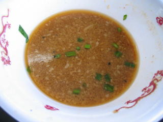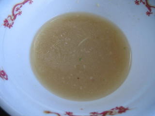 醤油の効いた濃いスープに生姜おろしが載っています。