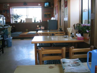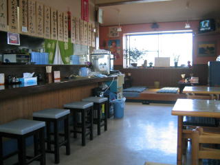 店内は正面に厨房とカウンター席、右側に小上がり席、左側にテーブル席です。