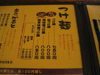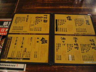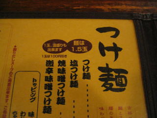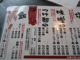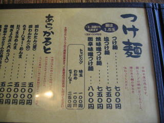 おしながき、今回は塩つけ麺700円を頼みました。