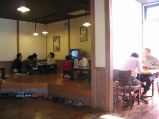 右側にはテーブル席、小上がり席があります。