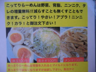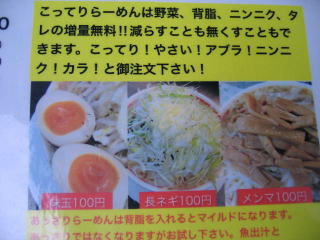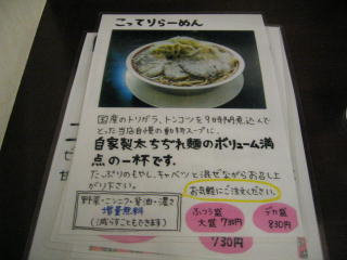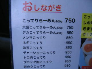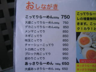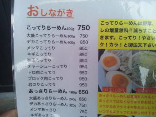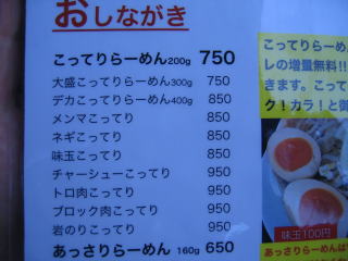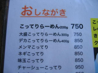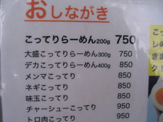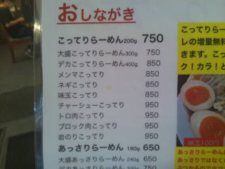 やっぱり「さっぱり」や「あっさり」より「こってり」でしょ、と言うことでいつもの「大盛こってりらーめん300g」750円にします。