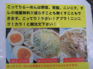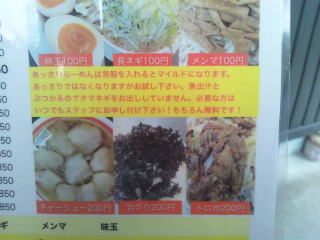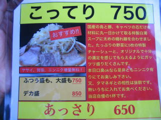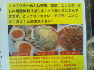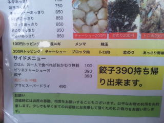 「つけ麺」の表示は無くなっていました、もう止めたのでしょうか。