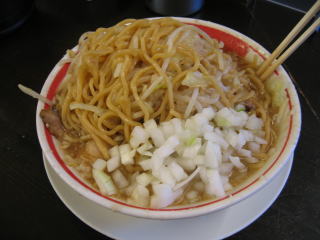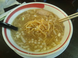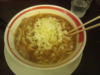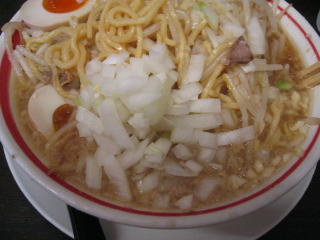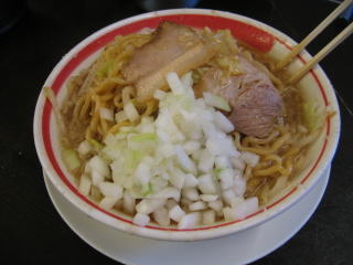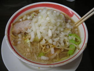 玉ネギを入れるのは、燕の背脂ラーメンに似ています。