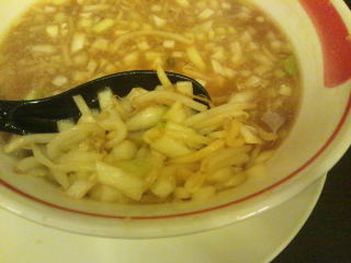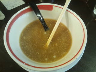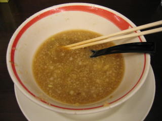 背脂が少ないせいか、スープも乳化していません。