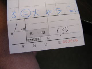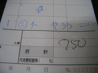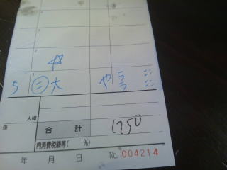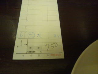 この頃、お会計伝票が来ました。