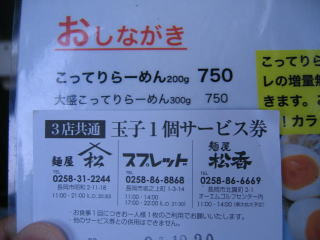 平成24年4月14日(土) 長岡市の新店「麺屋 松」さんにお邪魔しました。
