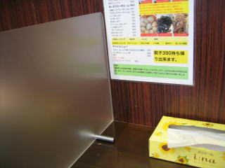 コロナ対策で仕切り板が設置されています、スペースはかなり広めです。