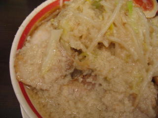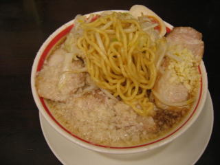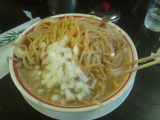 今日は麺大盛、野菜、背脂、にんにく多め、タレ普通です。