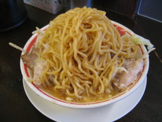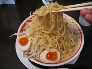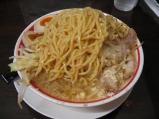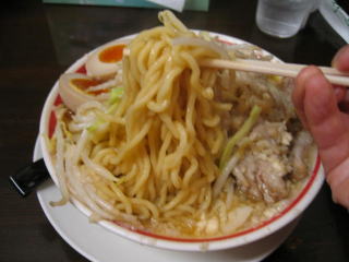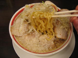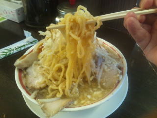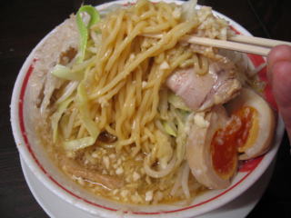 麺は中太麺くらい、二郎系のような極太麺ではありません。