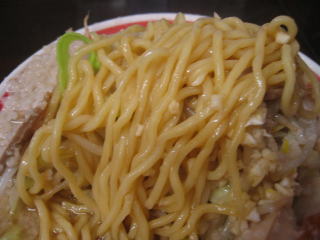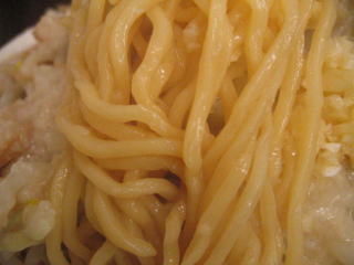 麺は二郎系の平打ち麺ではなく、丸めのコシがしっかりとした中太麺です。