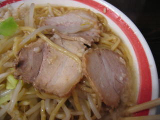 キャベツとモヤシ、チャーシューが載っています。
