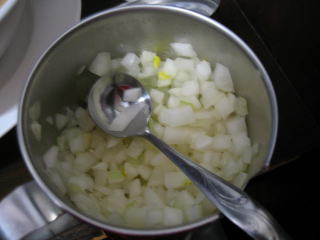 スープが熱いうちに玉ネギを入れて加熱調理します。