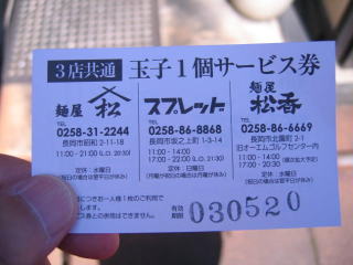 次回の玉子サービス券をいただいて帰ります。