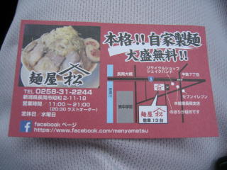 令和2年11月15日(日) 長岡市の「麺屋 松」さんにお邪魔しました。