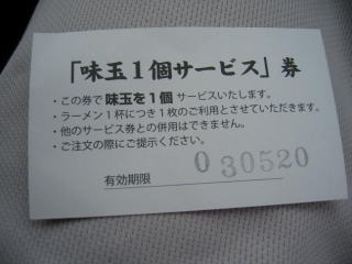 前回いただいた「サービス券」で味玉も付けています。