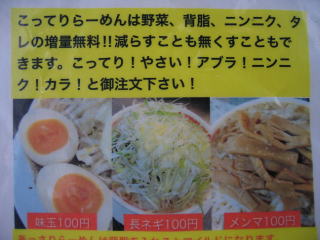 @背脂、Aタレ、Bにんにく、Cゆで野菜(こってり)。