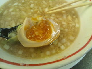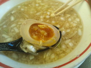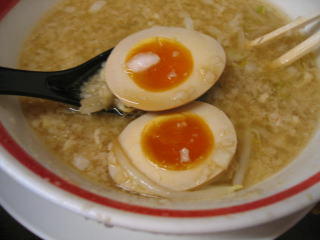 サービスの味玉もいただきます。