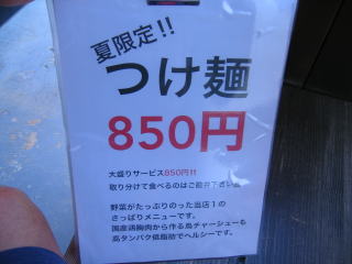 「夏限定!!つけ麺850円」を発売していました、注文しようと思いましたが「当店1のさっぱりメニューです。」でためらいます。