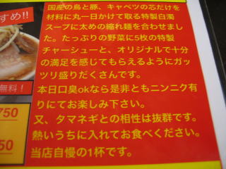 麺は大盛無料なので、「やさい」と「アブラ」は普通にし、「にんにく」だけコールします。
