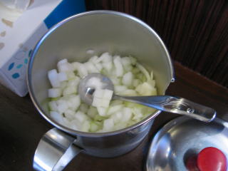 テーブル上の玉ネギを入れます。