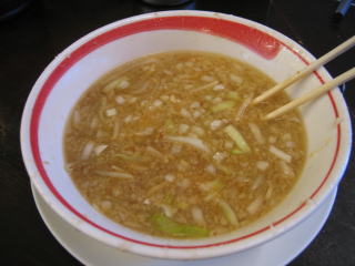 ニンニクと背油の効いたしょっぱいスープです。