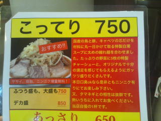 今日は「こってりらーめん」ふつう、盛大盛730円の予定できています。