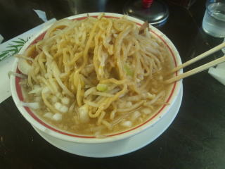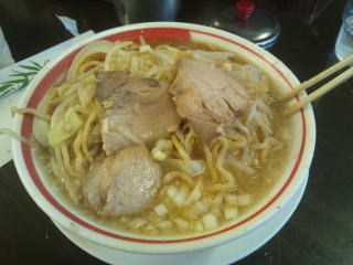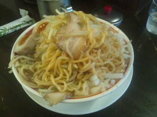 いつものオーダーのつもりでしたが、間違ってました「野菜普通、あぶらマシ、ニンニクマシ」です。