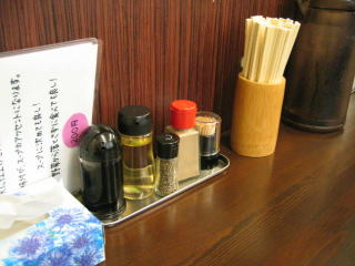 カウンターの上には刻んだ玉ネギポットが置いてあります。