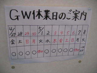 「GW休業日のご案内」がありました。
