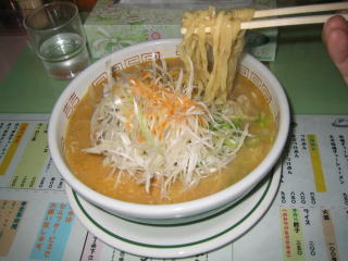 ネギ味噌ラーメン800円です。黄色のプリプリとした太麺中縮れです。