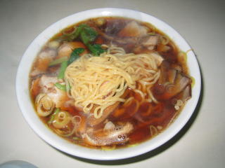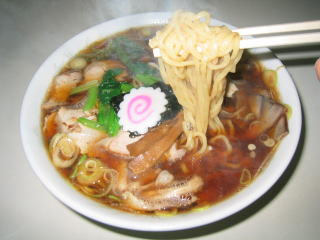 麺は柔らかめの中太麺、生姜の効いたしょうゆ味です。