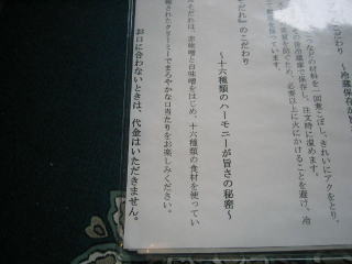 「どっちの料理ショウレシピみそ ラーメンもん八 手打うどんそば」色々書いてあります。