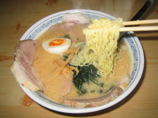 4%の差が生きる中太縮れ麺と16種類のみそがブレンドされたスープです。