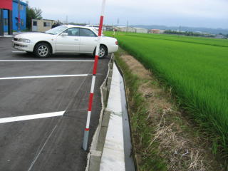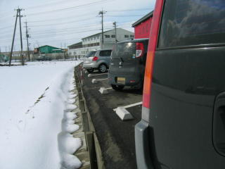 駐車場に車止めが設置されたので、以前よりは安全に駐車できますが、充分気を付けましょう。