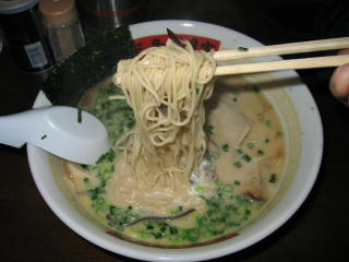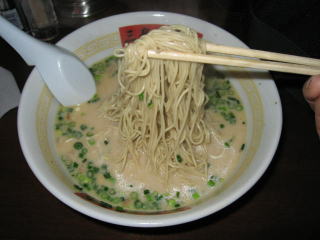 極細のストレート麺に濃厚なクリームのようなトンコツスープです。