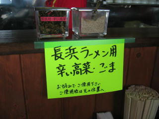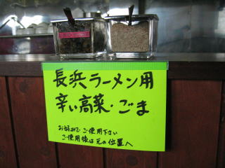 「長浜ラーメン用辛い高菜・ごま」が用意されていました。
