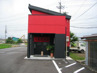建物は赤、黒の目立つ配色です。